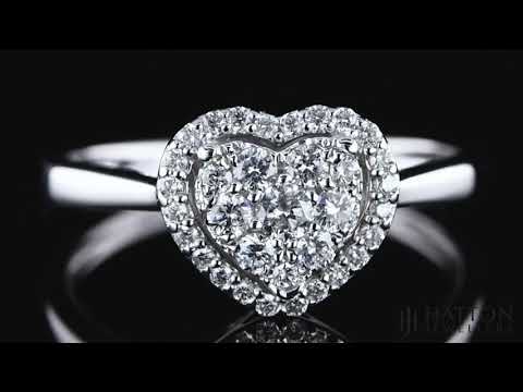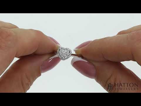 Express your love with this unique heart-shaped diamond ring. This sweet shape is crafted out of 18ct white gold and a sparkling cluster of brilliant-cut diamonds, totaling 0.25ct of diamond. The stones are graded at a beautiful H colour and SI clarity, and the shining plain band ensures the diamonds are the star of the show.