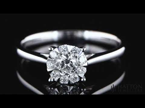 Re-creating the iconic style of a solitaire ring, this sparkling cluster is a timeless classic, featuring an eye-catching centre stone surrounded by a ring of smaller diamonds, the 18ct white gold illusion setting cleverly catches the light to compliment the stones and create even more sparkle. This piece contains 0.33ct of H colour and SI clarity diamonds, ensuring this is a high-quality ring that will stand the test of time.