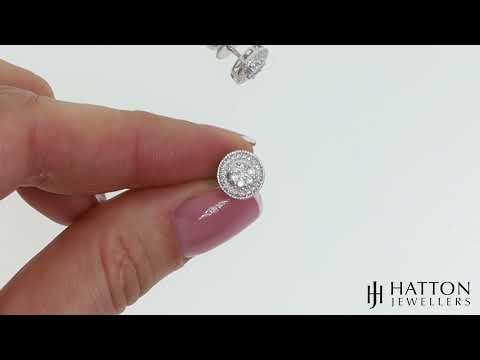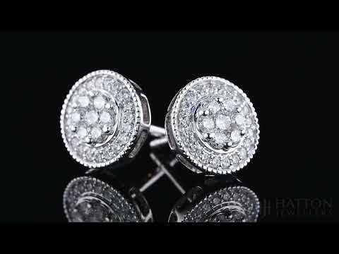 This beautiful pair of 18ct white gold diamond stud earrings have a stunning halo design to give a glittering effect. Between them, they share 0.50ct of brilliant diamonds in a rub-over setting. This pair of stud earrings features a classic post and butterfly fastening for a secure fit.