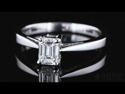 Get down on one knee with confidence that you have the perfect ring, expertly crafted from 18ct white gold and showcasing an elegant 0.50ct emerald cut diamond held within 4 claws. With an irresistible sparkle, this ring is a beautiful example of a grade H colour and VS clarity stone and is sure to steal her heart.