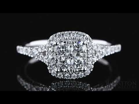 18ct White Gold 0.55ct Diamond Split Shoulder Halo Engagement Ring