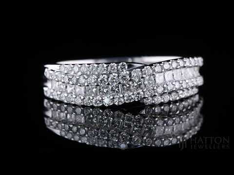 This glamorous 0.70ct diamond crossover ring makes the perfect dress ring. Set in 18ct white gold, wear this piece with any other jewellery for it to compliment your look beautifully.