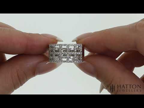 This 1.00ct diamond dress ring features baguette-cut diamonds within a sea of brilliant diamonds for a truly dazzling sparkle. The band is crafted from 18ct white gold, making this piece easy to pair with any jewellery from your collection. The diamonds in this ring are graded at colour G/H and clarity VS/SI.
