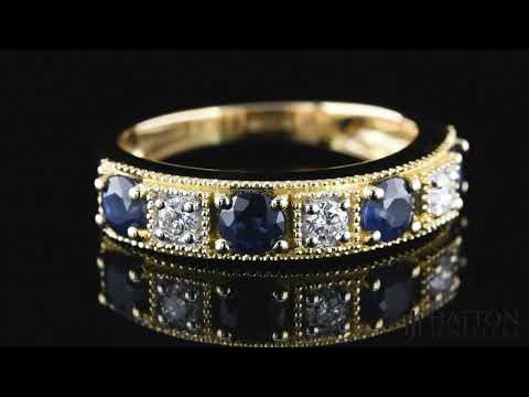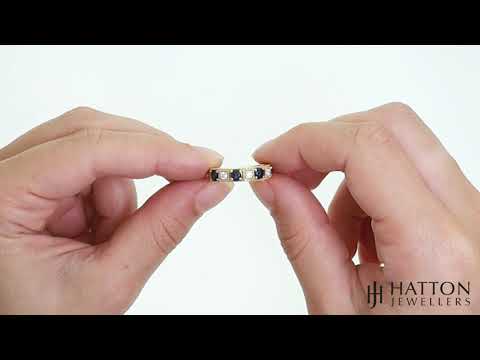 This elegant 18ct yellow gold eternity band is brought to life with beautiful blue sapphire stones. Offset with 0.15ct of shimmering diamonds, the 0.80ct sapphire stones are truly eye-catching.