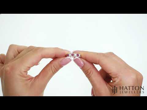 A beautiful vintage style eternity band, crafted from 18ct yellow gold and featuring 4 striking ruby stones which have a total weight of 0.80ct, alternating with 0.15ct of dazzling diamonds. Measuring at 4.6mm across the top, this ring is truly eye-catching, making the perfect gift to express an everlasting bond.