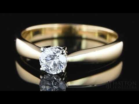 Simply beautiful, this classic 4 claw 18ct yellow gold solitaire has a minimal design to showcase the stunning round brilliant diamond and the effortless sparkle it gives owing to a G graded colour and SI graded clarity.