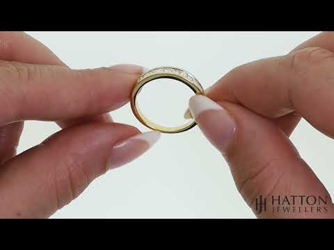This classic 18ct yellow gold eternity ring is perfect to complement your bridal set. Featuring 0.50ct of princess cut diamonds for a touch of sparkle. The diamonds in this ring are graded at colour G and clarity SI.