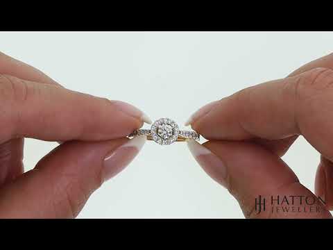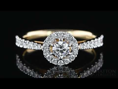 Designed to look simply stunning on the hand, this 18ct yellow gold ring will keep its sparkle for years to come. The 0.50ct of diamonds forming the round halo design all compete to be the brightest. The diamonds in this ring are graded at colour G/H and clarity SI.