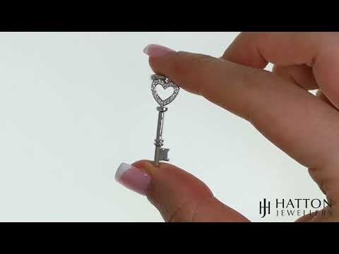 Mark a special occasion with this symbolic 9ct white gold key pendant. This stunning key holds 0.08ct of diamonds within its heart, making sure this piece will be something to treasure forever. Suitable for a chain measuring up to 3.7mm wide.