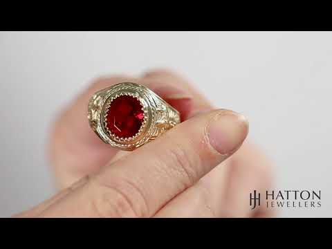 9ct Gold Red Gemstone Graduation / College Ring - 18.5mm - Gents