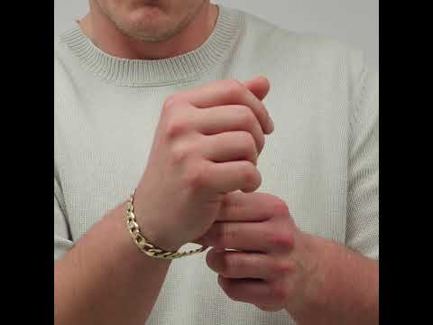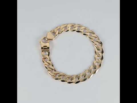 9ct Gold Solid Bevelled Edge Curb Bracelet - 11mm - 8.25" - 9" Gents