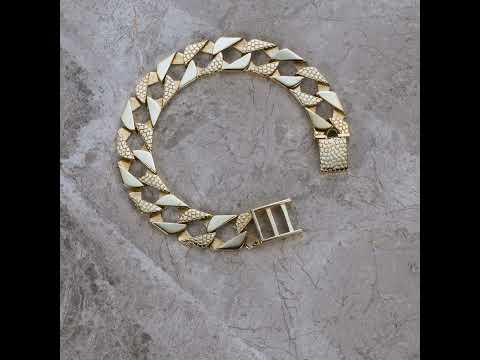 This impressive 9ct yellow gold square curb bracelet is a striking expression of craftsmanship and style. Featuring solid, precisely aligned links that alternate between polished and snake pattern textures, it delivers a bold look. With a substantial 16mm width and 3.8mm depth, this bracelet is a standout piece.