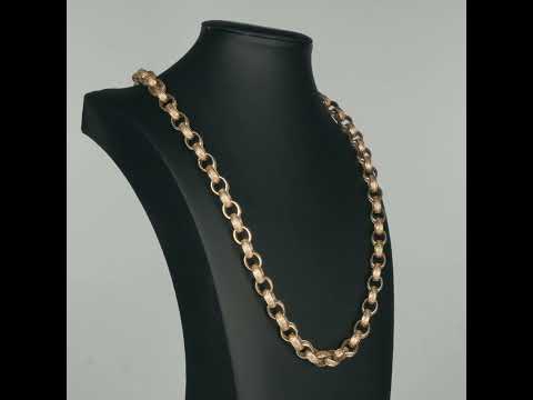 Expertly made in the UK using advanced craftsmanship, this chain offers a striking and patterned aesthetic - richly decorated throughout for a truly artisan finish. The oval Belcher links provide weight and presence, making it a standout piece suitable for those who appreciate solid gold jewellery with character and timeless appeal.