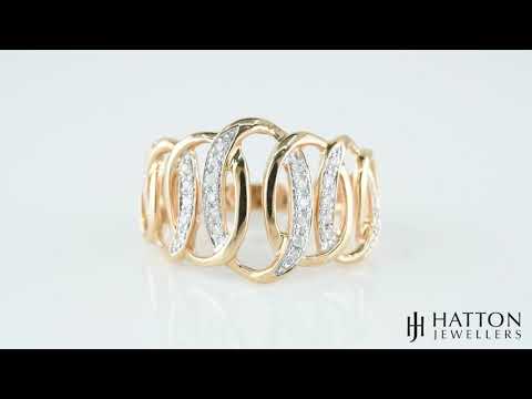 The beautiful interlocking 9ct yellow and white gold ovals that make up this ring symbolize an unbreakable connection. Measuring at 13.8mm across the top and featuring 0.10ct of diamonds embellished onto the white gold, this gorgeous showstopper is sure to steal her heart.
