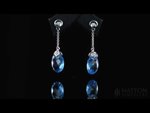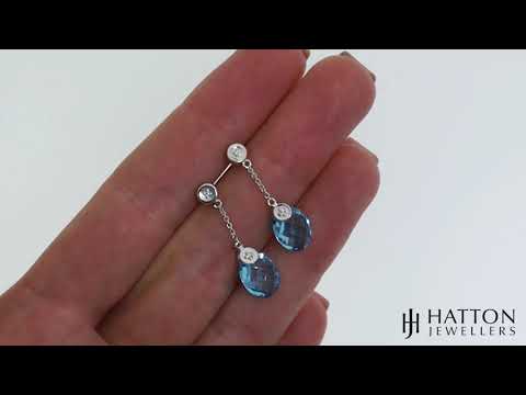 9ct White Gold 0.04ct Diamond & 6.93ct Blue Topaz Drop Earrings - 25 mm