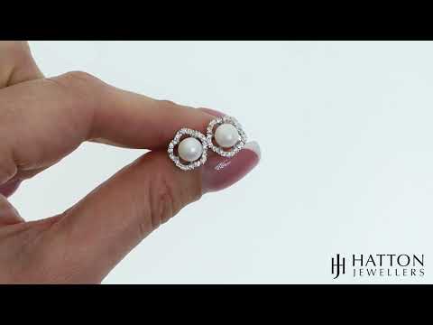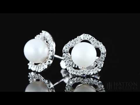 9ct White Gold 0.17ct Diamond & Pearl Stud Earrings - 11mm