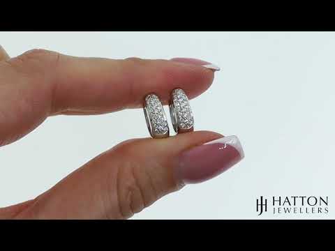 A gorgeous pair of diamond-encrusted hoop earrings. Featuring a diamond carat weight of 0.42ct between the pair, set into 9ct white gold to complement the stunning white sparkle. This pair of hoop earrings features a clip-in fastening for a secure fit.