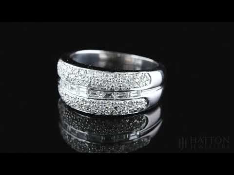 With a breathtaking sparkle, this 9ct white gold ring features a beautifully arranged baguette and round brilliant diamonds. Sure to make a special occasion even more memorable, this ring truly makes a statement, measuring 8.6mm across the top.