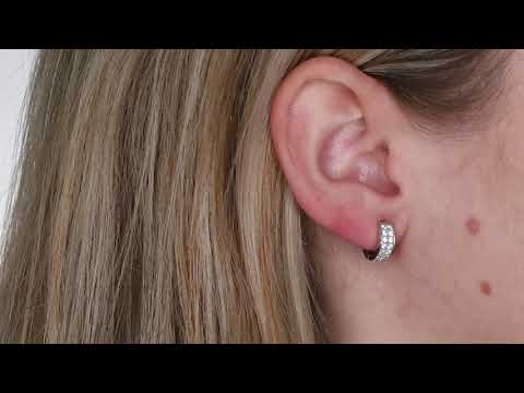 9ct White Gold Double Row Cubic Zirconia Huggie Earrings - 12mm