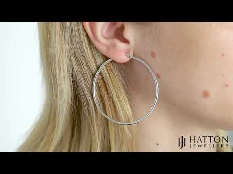 9ct White Gold Round Tube Hoop Design Earrings - 54mm