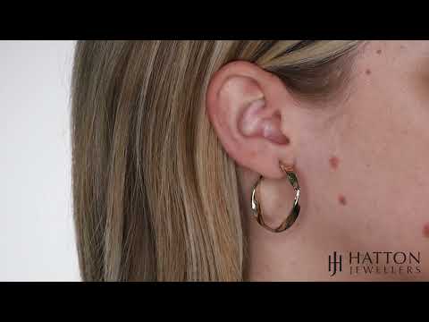 This gorgeous pair of 9ct yellow and white gold twisted hoop earrings reflect light with their textured sparkle cut design. They are comfortable and perfect to wear for all occasions. Featuring a secure hinged fastening with a snap closure for a secure fit.
