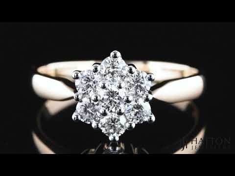 A 0.50ct diamond flower cluster ring that is perfect for any nature lover. With diamond petals and a 9ct yellow gold band, this ring is truly charming.