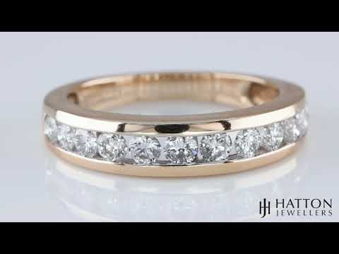 A symbol of everlasting bonds, this 9ct yellow gold 0.75ct diamond eternity ring makes the perfect gift for the love of your life. Featuring a classic channel setting and measuring at 4.5mm across the top, this ring perfectly complements a bridal set. The diamonds in this ring are graded at colour H and clarity SI.