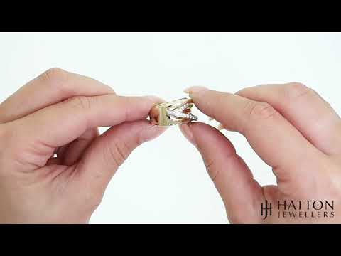 A stunning crossover ring featuring six interconnecting rows of 9ct yellow gold, three of which are grain set with round brilliant diamonds whilst the other three are highly polished. The combination makes for an eye-catching design with a beautiful sparkle. Measuring at 12.3mm across the top, it is sure to make a statement.