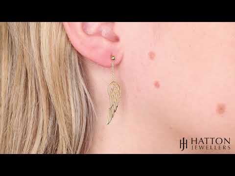 A stunning pair of 9ct yellow gold drop earrings featuring an angel wing on a chain. Comfortable and perfect to wear for all occasions. Featuring a secure post and butterfly back fastening for a secure fit.