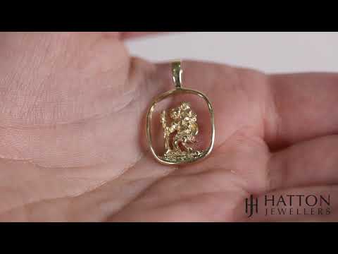 This stunning three-dimensional St. Christopher Pendant is crafted from solid 9ct gold. Complete with a highly polished finish and a full British hallmark stamp to confirm the gold purity. The height measurement includes the top link.