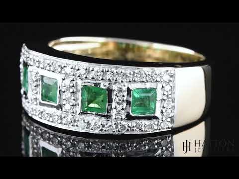 9ct Yellow Gold Diamond & 0.40ct Emerald Eternity Ring