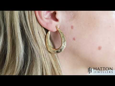 9ct Yellow Gold Diamond Cut Patterned Oval Creole Earrings - 30mm