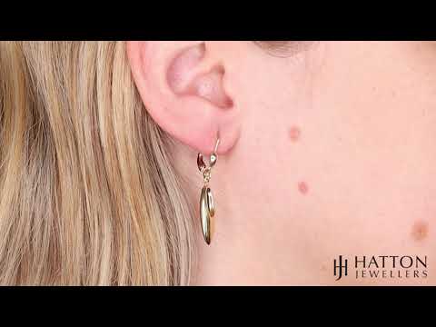 A fancy pair of 9ct yellow gold drop earrings with an open oval design. Comfortable and perfect to wear for all occasions. They have a secure lever back fastening with snap closure for a secure fit.