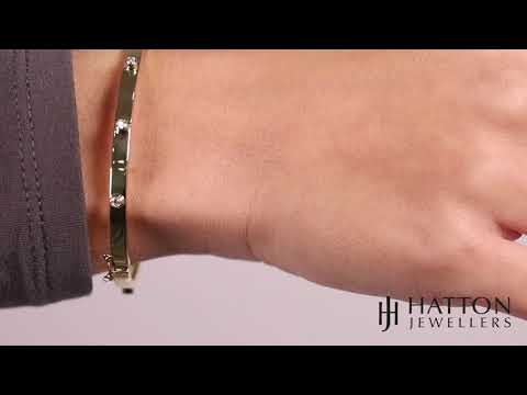 9ct Yellow Gold Gem Set Hinged Love Bangle - 4mm - Ladies