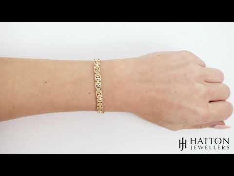 This stunning flat byzantine link bracelet is crafted from 9ct yellow gold. A lady's wrist size measuring 7 inches in length and each link has a width of 5.75mm. This beautiful bracelet features solid perfectly aligned links and is suitable for everyday wear.
