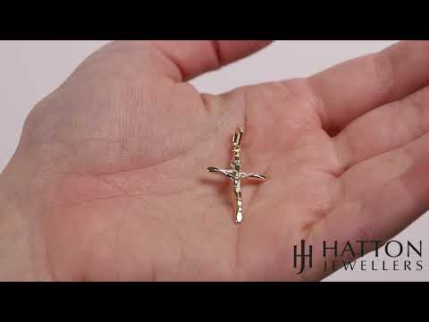 Semi-solid in structure, this stunning Italian made crucifix pendant is finished in 9ct Yellow gold. A Detailed designed piece great to wear for all occasions. Complete with a full British hallmark stamp to guarantee the gold purity. The Height measurements include the top link.