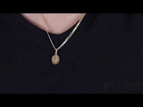 This stunning Miraculous Medallion Madonna pendant is crafted from solid 9ct gold. Complete with a highly polished finish and a full British hallmark stamp to confirm the gold purity. The height measurement includes the top link.