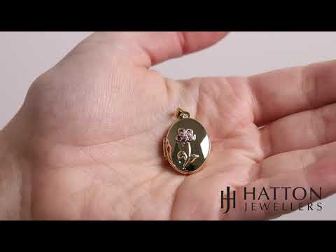 9ct Yellow Gold Oval Shaped Floral Gemset Locket Pendant - 30mm