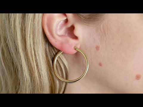 9ct Yellow Gold Round Tube Plain Design Hoop Earrings - 36mm