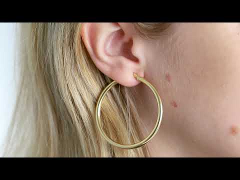 9ct Yellow Gold Round Tube Plain Design Hoop Earrings - 45mm