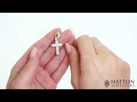 A beautiful 9ct Yellow Gold rounded cross pendant set with the highest quality cubic zirconia stones allowing for a high-shine finish to the piece. Comes complete with a gem-set V link that can accommodate up to a 4mm * 5mm curb chain.