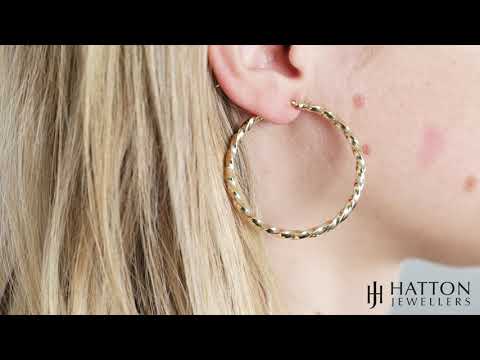 9ct Yellow Gold Round Twist Design Hoop Earrings - 46mm