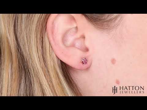 A gorgeous pair of 9ct yellow gold stud earrings have a flower design, pave set with a cluster of ruby stones. Comfortable and perfect to wear for all occasions. Featuring a secure post and butterfly back fastening.
