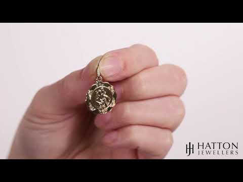 The highest quality St. Christophers on the market, these are stamped in Italy and not to be confused with lower quality cast versions. Crafted from 9ct yellow gold, this pendant has very fine detailing. A single-sided design displaying St. Christopher on the front and a mirror finish on the back. A British hallmark is stamped to confirm the gold purity. The height measurement includes the top link.