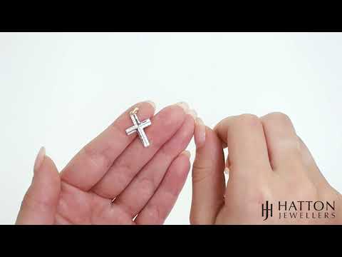 A classic 9ct White & Yellow Gold, small cross pendant gem-set with the top grade cubic zirconia stones giving a beautiful sparkle. This lovely piece is perfect for everyday wear and will complement up to a 2.5mm * 3mm curb chain.