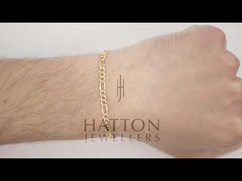 High quality, Italian made 9ct yellow gold Figaro bracelet. This Figaro design combines style with strength and is perfect for everyday wear. A classic timeless style with flat bevelled links and a strong lobster claw clasp. Finished with a British hallmark to confirm the 375 - 9ct gold purity.