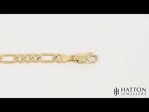 High quality, Italian made 9ct yellow gold Figaro bracelet. This Figaro design combines style with strength and is perfect for everyday wear. A classic timeless style with flat bevelled links and a strong lobster claw clasp. Finished with a British hallmark to confirm the 375 - 9ct gold purity.