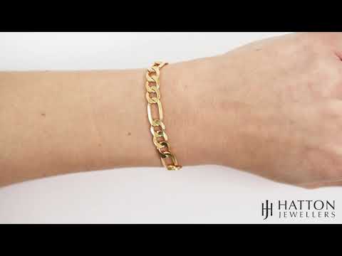 High quality, Italian made 9ct yellow gold Figaro bracelet. This Figaro design combines style with strength and is perfect for everyday wear. A classic timeless style with flat bevelled links and a strong lobster claw clasp. Finished with a British hallmark to confirm the 375 - 9ct gold purity.