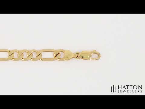 High quality, Italian made 9ct yellow gold Figaro bracelet. This Figaro design combines style with strength and is perfect for everyday wear. A classic timeless style with flat bevelled links and a strong lobster claw clasp. Finished with a British hallmark to confirm the 375 - 9ct gold purity.