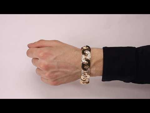 This stunning, ornately patterned, mariner bracelet is crafted from 9ct yellow gold. Featuring a solid structure with alternating, polished, and ornate links. This is the biggest size in our mariner bracelet range. Each link measures 19 mm in width with a thickness of 5mm. Complete with a full UK hallmark to confirm the purity and a strong, hinged, clasp with two length options.